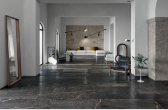 IMPERIAL WHITE MARBLE HEXAGON + NERO MARQUINA DOT HONED MOSAIC