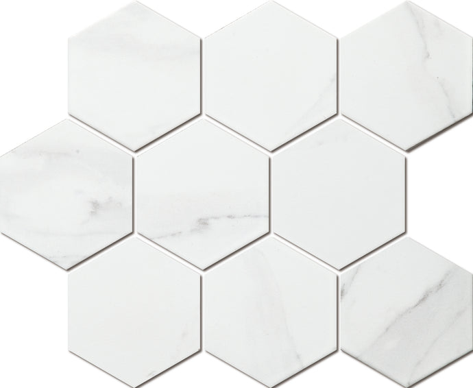 CARRARA LOOK MATTE 110MM HEXAGON PORCELAIN MOSAIC
