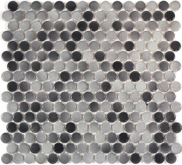 GREY MIX GLOSS SMALL PENNY ROUND PORCELAIN MOSAIC