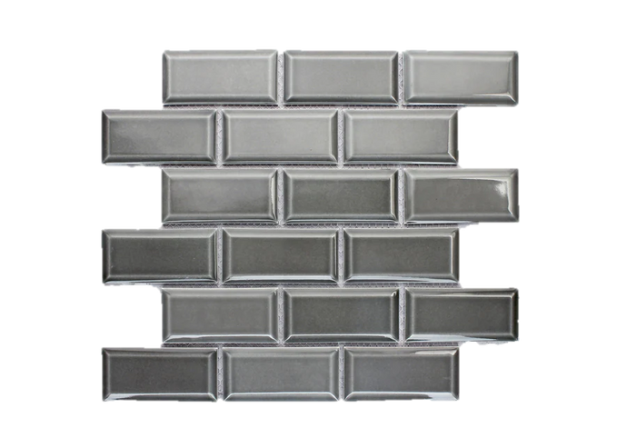 • ASH GREY GLOSS BEVELLED BRICKBOND PORCELAIN MOSAIC