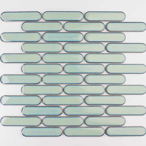 ANTIQUE GREEN GLOSS OVAL BRICKBOND PORCELAIN MOSAIC