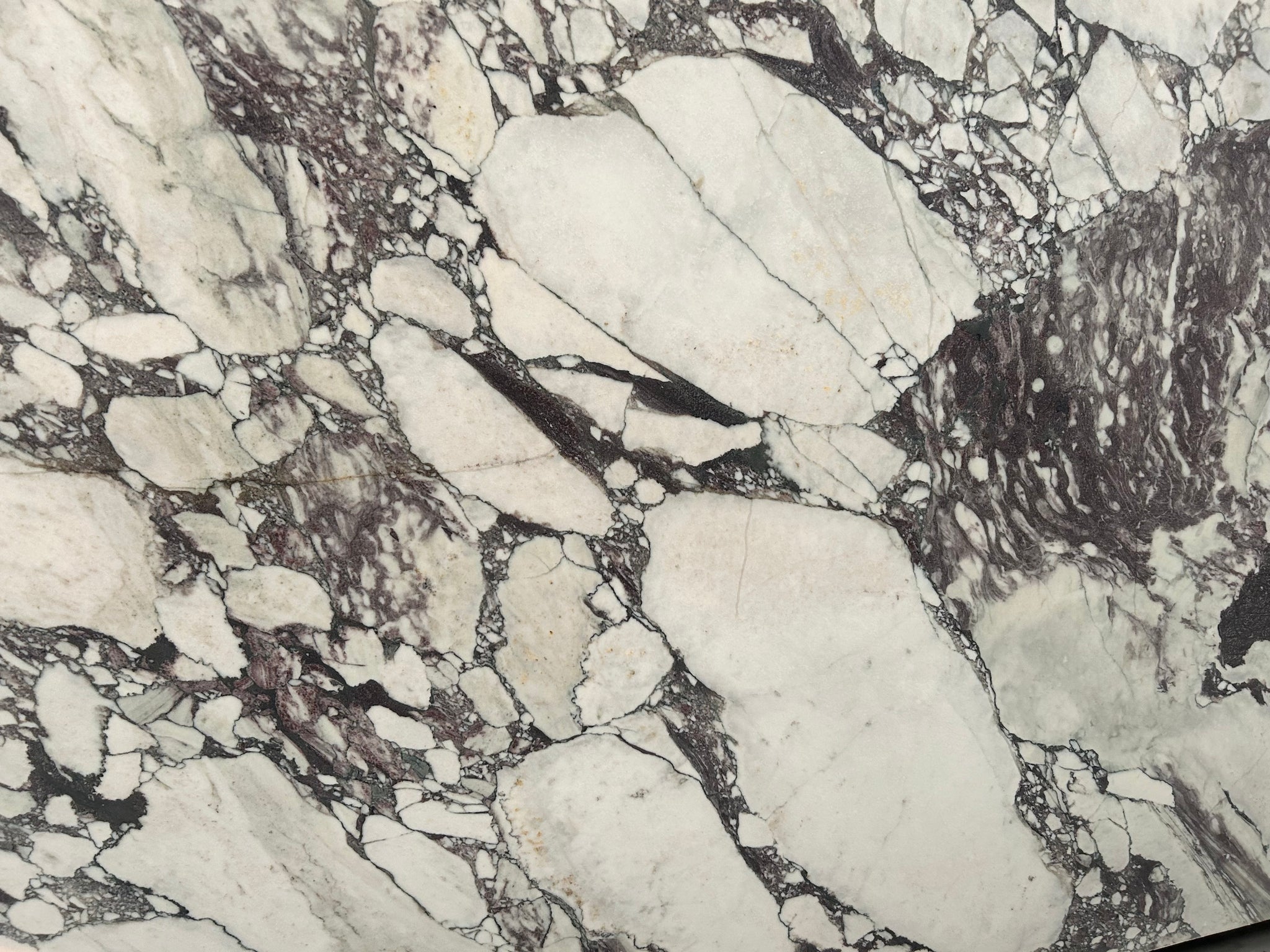 Calacatta Viola is a luxurious marble known for its striking appearance. It features a white or cream background adorned with dramatic, bold veining in shades of deep purple and violet. The veins can vary in intensity and pattern, creating a unique and sophisticated look. This marble is often used in high-end applications, such as countertops, flooring, and wall cladding, adding a touch of elegance and refinement to any space. Its natural beauty and rarity make it a sought-after choice for both residential and commercial projects.
