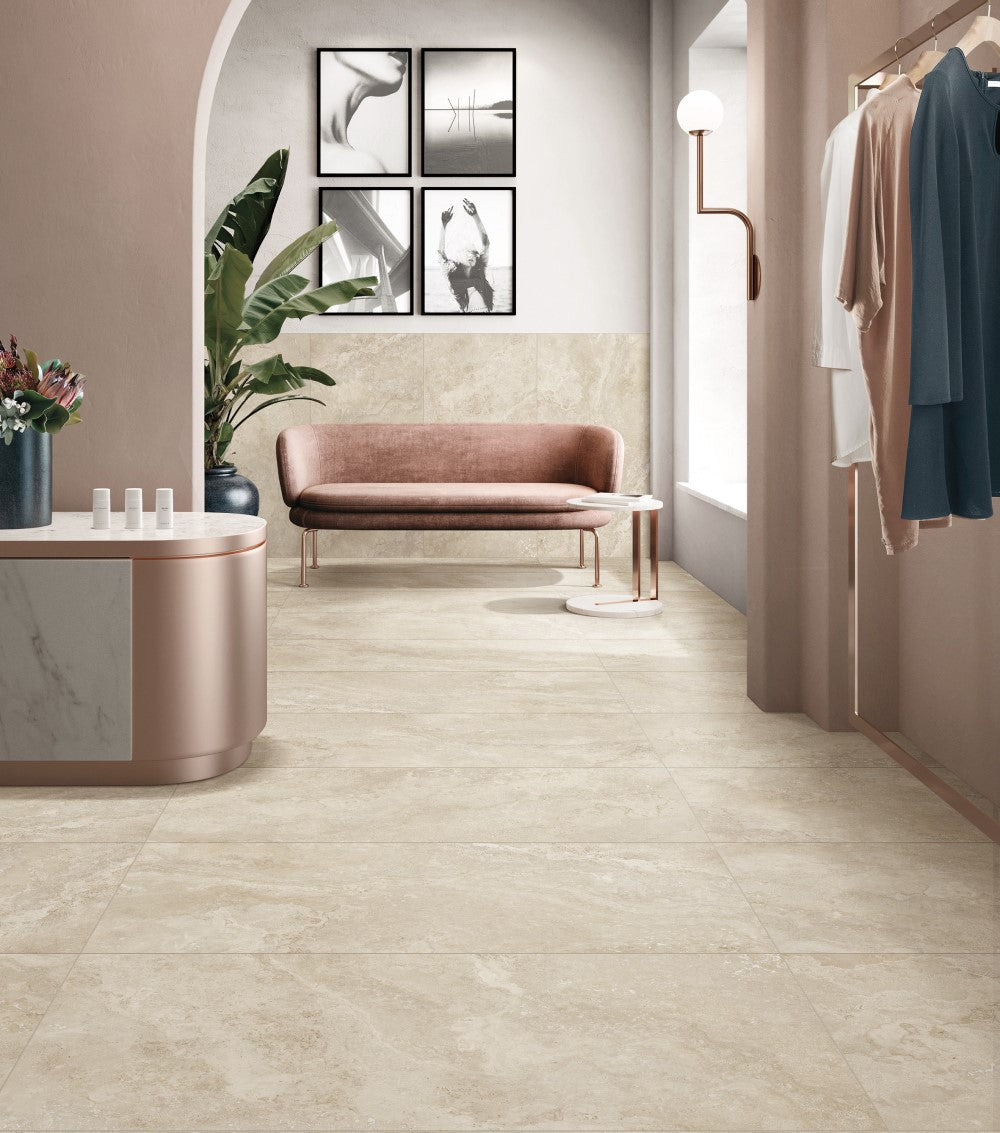 Stone look tiles. Smooth solution for Anti-slip requirements. High anti-slip rating for outdoor areas and bathrooms. No sanded finish for ease of cleaning! Spanish porcelain - Suitable for all areas both wet + dry.